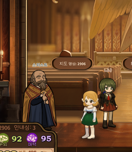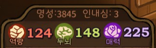 인내심: 턴마다 3점이 주어지며 NPC와 데이트 시 소모된다.