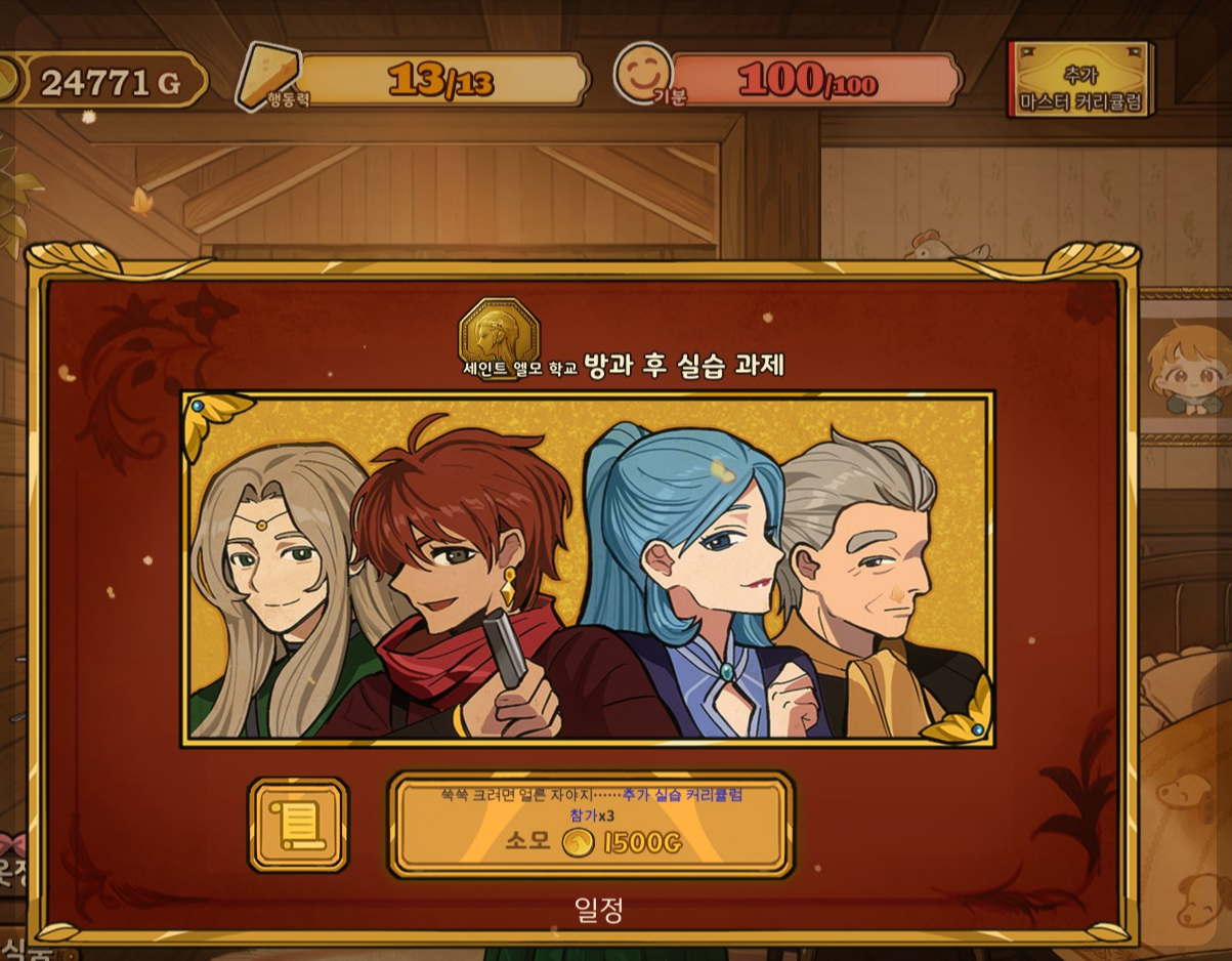 매 해(하화년, 추화년, 동화년)마다 마스터 커리큘럼이란 이름으로 추가 방과 후 실습과제를 할 수 있다. 0G, 800G, 1500G 씩 총 3회 구입할 수 있으며, 방과 후 실습과제는 일반 수업보다 더 많은 능력치 및 학과 점수를 올려주므로(학과점수 100점 추가 획득) 군주계열 등 높은 점수가 필요한 엔딩은 필수다.