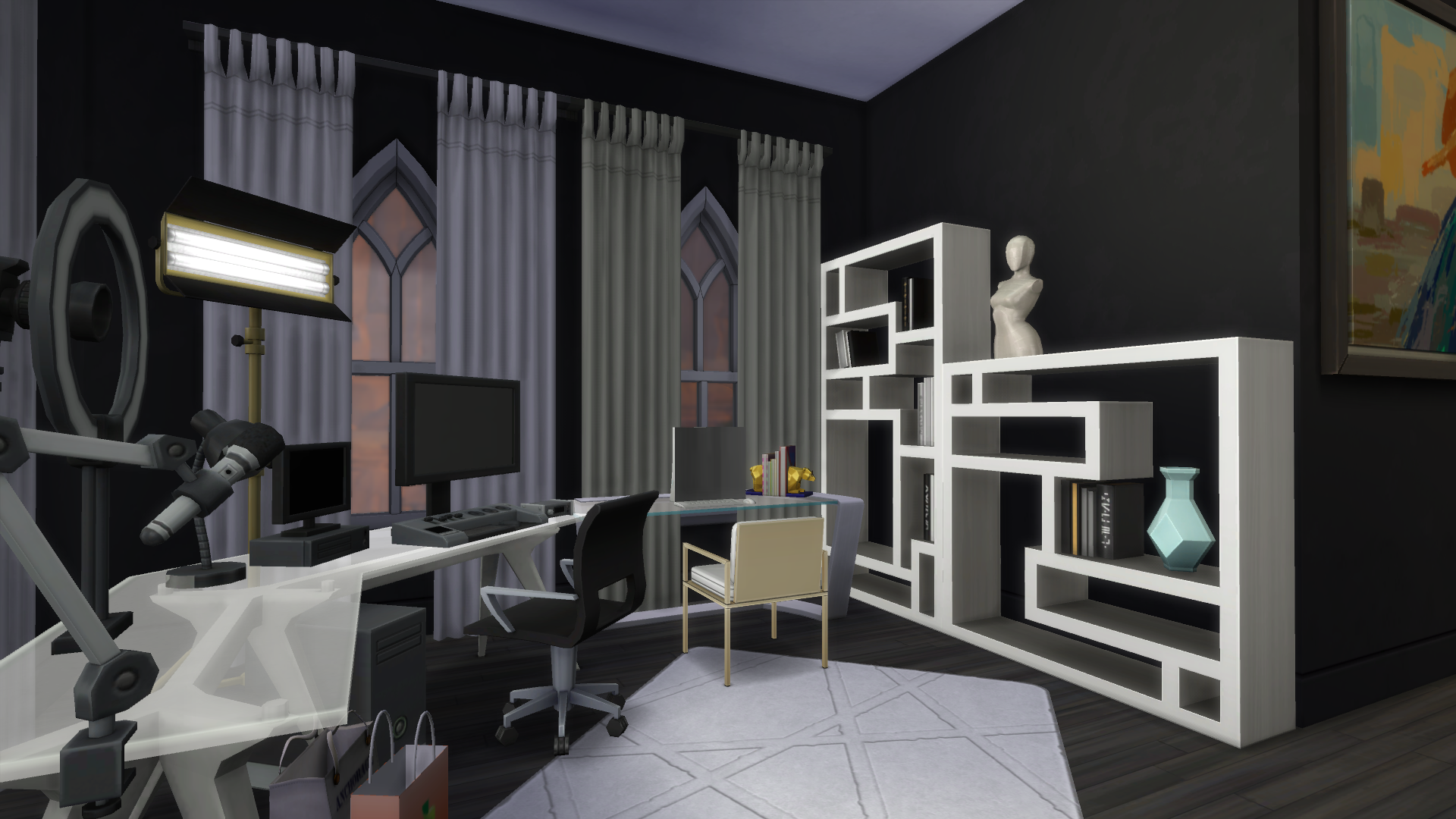 마크의 직업은 유튜버다. 그래서 방을 크게 두개로 나눠서 한쪽은 유튜브 촬영공간, 한쪽은 침실공간으로 꾸몄다