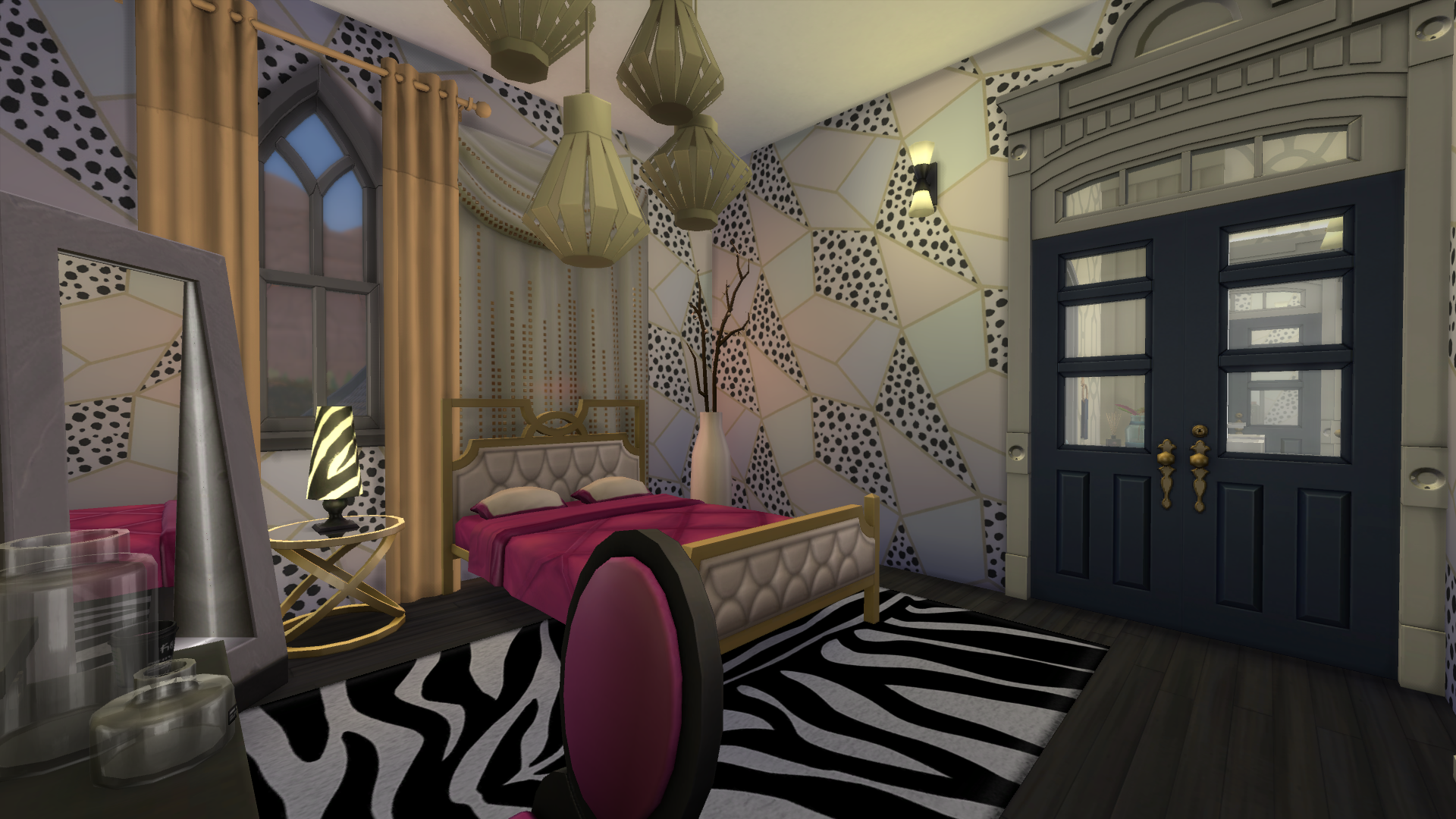 벽지는 얼룩말 무늬를 못찾아서 비슷한 CC템 벽지를 해줬다. 뭔가 더 있어보임