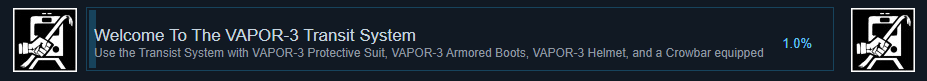 Use the Transist System with VAPOR-3 Protective Suit, VAPOR-3 Armored Boots, VAPOR-3 Helmet, and a Crowbar equipped
