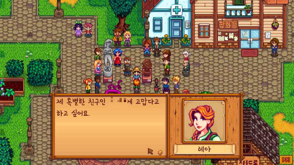 레아 이벤트 분기에서 마을에 전시회를 열자고 하니 마을에서 전시회가 열렸다.