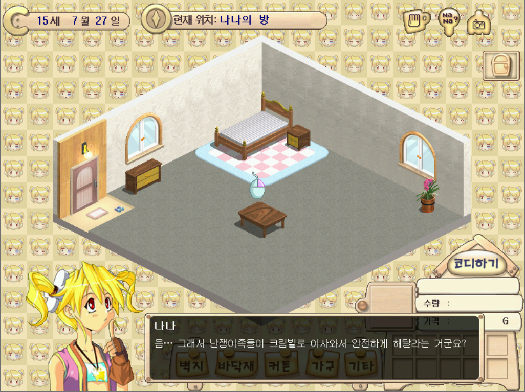 제작 | 사이버 침대, 사이버 소파(2), 사이버 협탁(2), 사이버 옷장, 사이버 테이블(2), 사이버 의자(8), 사이버 장식장(2), 사이버 서랍장 |